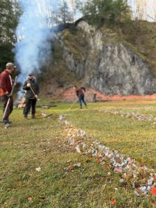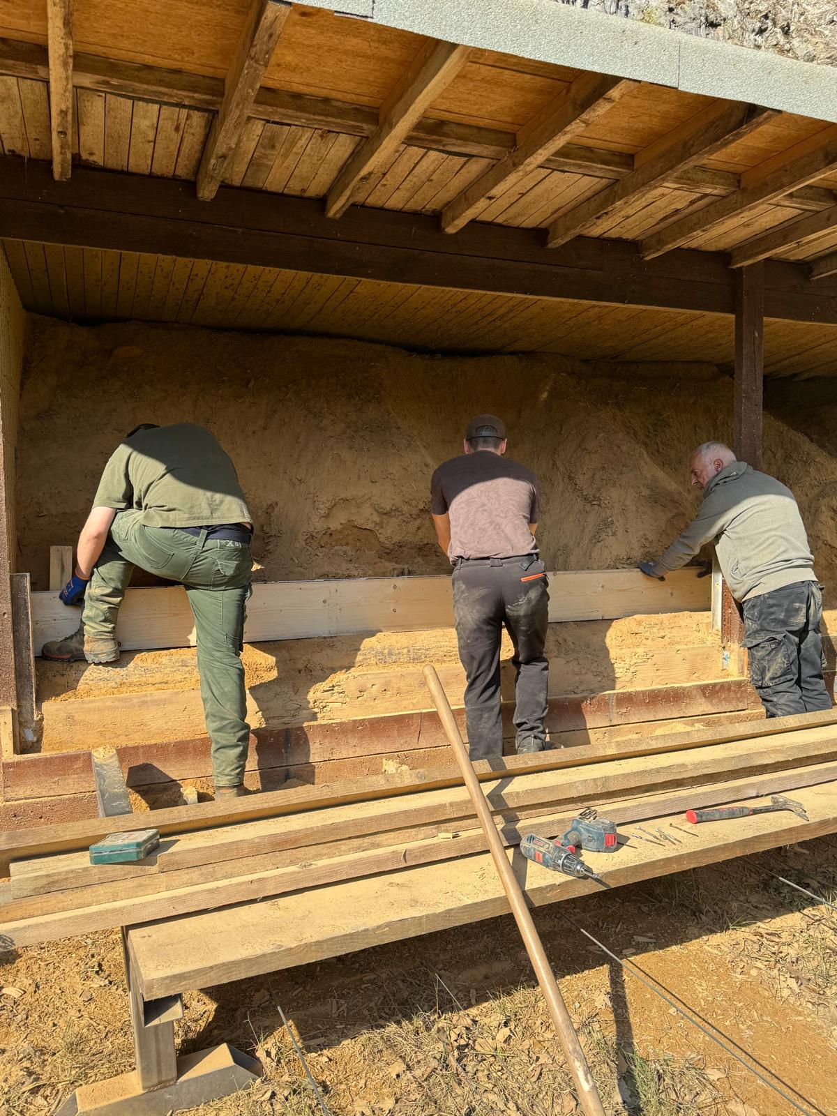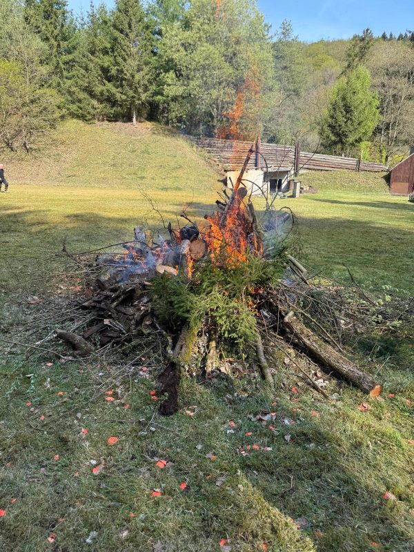 In gemeinschaftlicher Arbeit wurden Rasenflächen gemäht, Sand gesiebt, Schrotbecher und Tonscherben entfernt, Holz gespalten sowie zahlreiche Reparatur- und Reinigungsarbeiten erledigt. Hand in Hand gelang es, den Schießstand im Laufe des Vormittags wieder umfassend herzurichten.